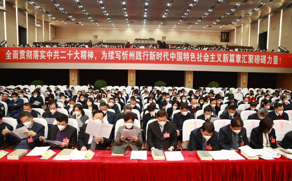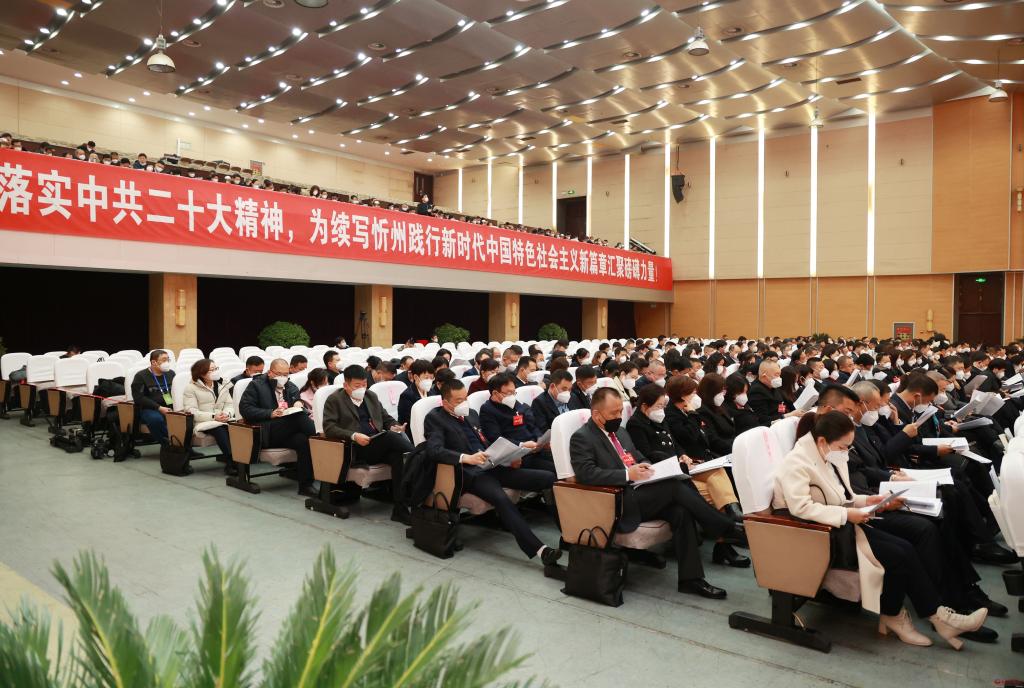 晉控集團(tuán)忻州會議中心千人會堂內(nèi)外布置簡樸,莊嚴(yán)隆重。會場內(nèi),燈光璀璨,氣氛熱烈。大會主席臺正中懸掛著政協(xié)會徽,在十面鮮艷紅旗的映襯下熠熠生輝。會場后方高高懸掛著大紅條幅:全面貫徹落實(shí)中共二十大精神,為續(xù)寫忻州踐行新時(shí)代中國特色社會主義新篇章匯聚磅礴力量!