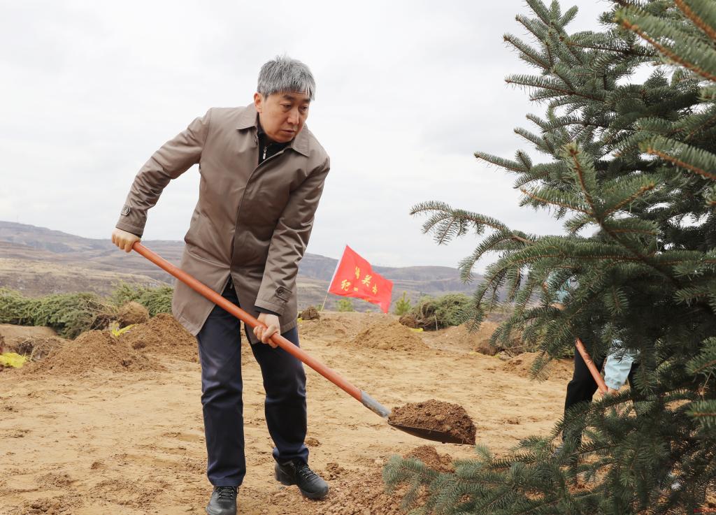 朱曉東與干部群眾一同植樹。范濤 攝 李建國對(duì)全市春季植樹造林和全市黃河流域國土綠化試點(diǎn)示范項(xiàng)目建設(shè)工作進(jìn)行了具體安排。他要求,各級(jí)各有關(guān)部門要圍繞全市“兩山四河一流域”生態(tài)建設(shè)格局,緊抓去冬今春雨水較多的有利時(shí)機(jī),加快推進(jìn)“兩山”生態(tài)保護(hù)修復(fù)、黃河流域和環(huán)京津冀生態(tài)防護(hù)等重點(diǎn)工作擴(kuò)面提質(zhì),確保年度人工造林40萬畝以上的目標(biāo)任務(wù)圓滿完成。要推深做實(shí)林長制工作,加大清尾補(bǔ)欠力度,確保去年未完成的營造林任務(wù)在今年5月底前全部完成。各級(jí)各有關(guān)部門要強(qiáng)化大局意識(shí),整合資源力量,合力攻堅(jiān)推進(jìn)黃河流域國土綠化試點(diǎn)示范項(xiàng)目,確保年度11.7萬畝國土綠化任務(wù)高質(zhì)量完成。特別是市規(guī)劃和自然資源局及4個(gè)黃河流域國土綠化試點(diǎn)示范項(xiàng)目縣,要堅(jiān)持高標(biāo)準(zhǔn)定位,把好關(guān)鍵環(huán)節(jié),保證建設(shè)質(zhì)量,高位推動(dòng)試點(diǎn)示范項(xiàng)目有序?qū)嵤瑸槿⊥苿?dòng)黃河流域生態(tài)保護(hù)和高質(zhì)量發(fā)展作出應(yīng)有貢獻(xiàn)。各級(jí)各部門要注重發(fā)揮黨員干部的示范帶頭作用,廣泛宣傳發(fā)動(dòng),積極組織動(dòng)員,不斷激發(fā)全民參與義務(wù)植樹的自覺性和主動(dòng)性,在全社會(huì)形成愛綠、植綠、護(hù)綠的良好導(dǎo)向,真正讓忻州的天更藍(lán)、山更綠、水更清,生態(tài)環(huán)境更美好。