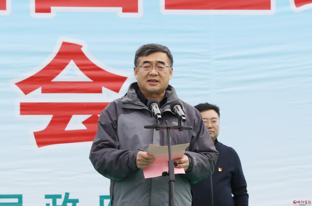 朱曉東講話。范濤 攝 偏關(guān)縣連續(xù)45年機(jī)關(guān)干部帶頭義務(wù)植樹,綠化彩化財(cái)化統(tǒng)籌推進(jìn),增綠補(bǔ)綠護(hù)綠科學(xué)施治,取得了治山增綠、涵水固沙的階段性成效,先后榮獲“造林綠化先進(jìn)縣”“生態(tài)建設(shè)紅旗縣”等多項(xiàng)榮譽(yù)。市委、市政府在偏關(guān)植樹現(xiàn)場(chǎng)舉行2023年全民義務(wù)植樹暨國土綠化試點(diǎn)示范項(xiàng)目啟動(dòng)儀式,就是以具體行動(dòng)認(rèn)真貫徹落實(shí)習(xí)近平生態(tài)文明思想,深入踐行“兩山”理論,動(dòng)員全市上下聚力春季植樹造林和黃河流域國土綠化試點(diǎn)示范項(xiàng)目建設(shè),孜孜以求、久久為功,以更加有力的舉措推進(jìn)黃河流域生態(tài)保護(hù)和高質(zhì)量發(fā)展,以更加務(wù)實(shí)的成效加快美麗忻州建設(shè)。