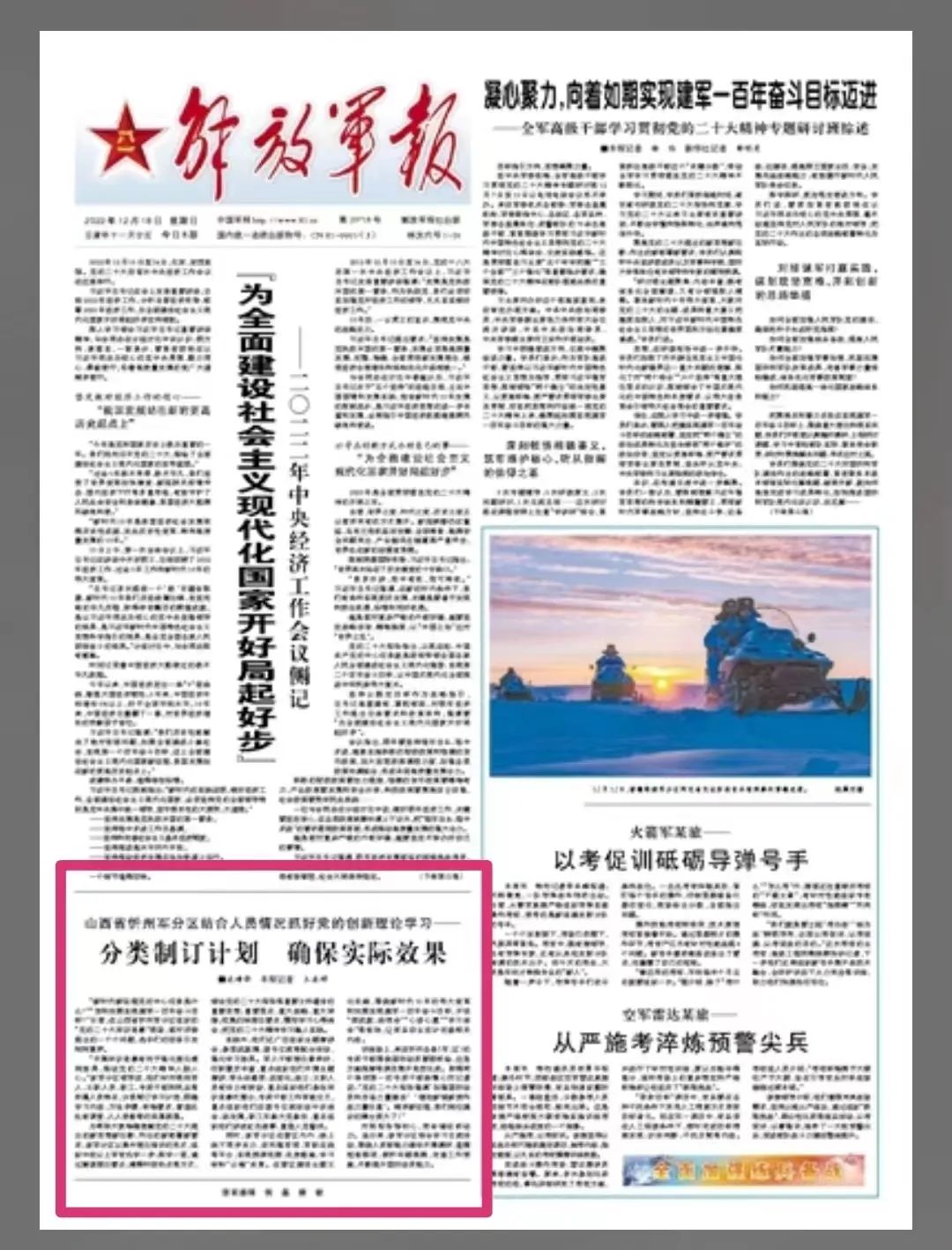 同時,該軍分區(qū)在營區(qū)內(nèi)外、線上線下同步發(fā)力,依托強軍網(wǎng)、軍職在線等平臺,實現(xiàn)授課視頻、優(yōu)質(zhì)教案、學(xué)習(xí)材料“云端”共享。在營區(qū)建設(shè)主題文化長廊,圍繞新時代10年的偉大變革和如期實現(xiàn)建軍一百年奮斗目標(biāo),開設(shè)“頌成就、話使命”“心語心愿”“學(xué)習(xí)體會”等板塊,讓官兵自主設(shè)計完善相關(guān)內(nèi)容。