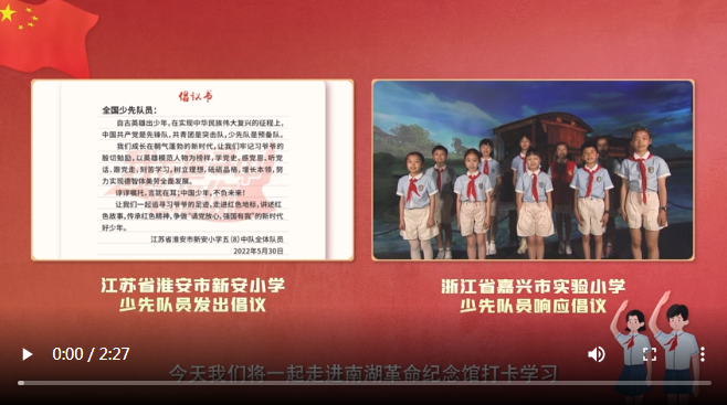 現(xiàn)代快報訊(記者 于露 王新月)2022年5月30日,是江蘇省淮安市新安小學少先隊員們收到習近平總書記回信一周年的日子。近日,他們向全國少先隊員發(fā)出“跟著習爺爺?shù)淖阚E學黨史”的倡議。浙江省嘉興市實驗小學的少先隊員們第一時間響應倡議,追尋習爺爺?shù)淖阚E,打卡南湖革命紀念館,講述紅色故事,傳承紅色精神。