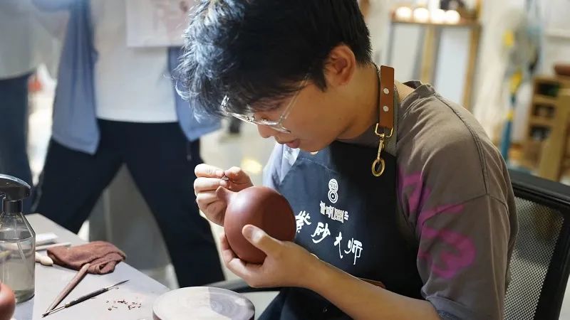 在砂器(紫砂)文化示范區(qū)的山西晉明堂文化科技有限公司(以下簡稱晉明堂),一位年輕人正熟練地運用各種工具給手里的紫砂壺進行壺嘴部分的制作。他叫穆清,今年剛20歲出頭的他,耳濡目染父親對紫砂文化的熱愛,也對這一行業(yè)產生了濃厚的興趣,決心將平定紫砂文化傳承發(fā)揚下去。