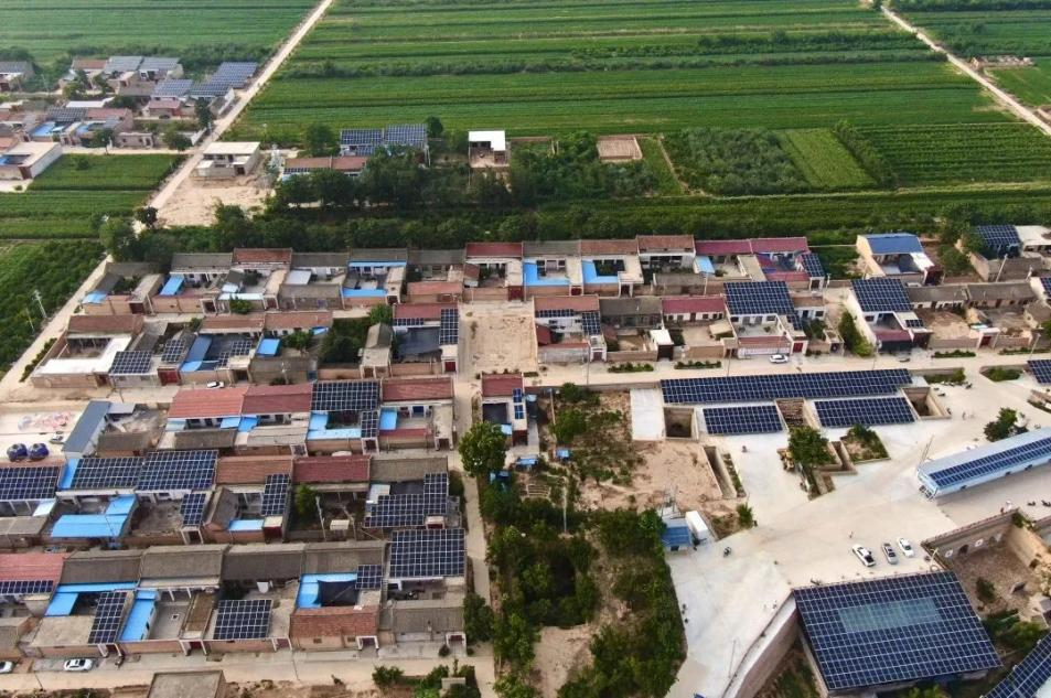 家家農(nóng)戶屋頂上藍(lán)色光伏板閃閃發(fā)光