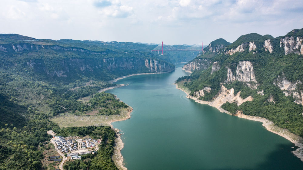 貴州省畢節(jié)市烏江源百里畫廊景色(2022年5月6日攝,無(wú)人機(jī)照片)。新華社記者 陶亮 攝