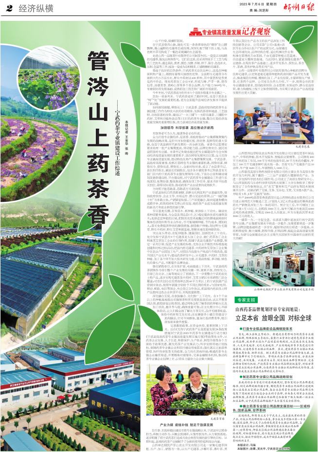 為促進(jìn)寧武藥茶專業(yè)鎮(zhèn)高質(zhì)量發(fā)展,寧武縣以優(yōu)質(zhì)資源要素為支撐,堅持政府扶持、企業(yè)管理、市場運作、整合推進(jìn)的原則,全縣實施包括“市場主體倍增”“創(chuàng)新能力提升”“就業(yè)富民賦能”“質(zhì)量品牌提升”“銷售市場拓展”“重大項目攻堅”和“產(chǎn)業(yè)要素保障”等在內(nèi)的七大行動,以1軸4鎮(zhèn)10村為承載主體,產(chǎn)銷緊密銜接,三產(chǎn)深度融合,縱向延鏈和橫向成群并舉,藥茶藥材和功能食品互促,推動藥茶產(chǎn)業(yè)由成型向成勢躍升。