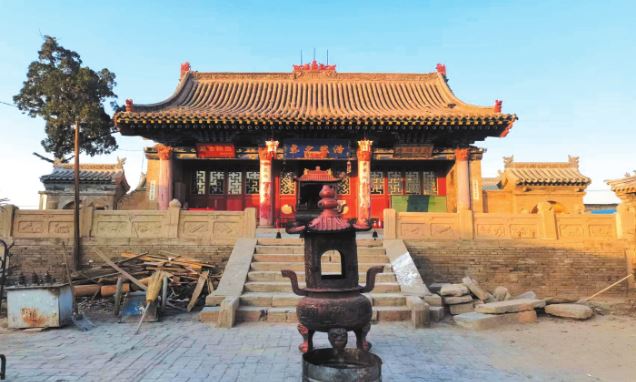 東關(guān)關(guān)帝廟位于原平市崞陽鎮(zhèn)東關(guān)村,距崞陽城東門外約100米。始建年代不詳,據(jù)正殿梁架題記載,清咸豐三年(1953)重修,現(xiàn)存建筑為清代遺構(gòu)。東西長(zhǎng)25.5米,南北寬87米,占地面積2218平方米。坐北朝南,二進(jìn)院落布局,中軸線建有影壁、大門、正殿和圣母殿,兩側(cè)為東西配殿。正殿磚砌臺(tái)基,前設(shè)月臺(tái),其上三面設(shè)勾欄、望柱,欄上雕有各種花卉、如意及禽獸。殿身面寬三間,進(jìn)深六椽,單檐懸山頂。七檁前后廊式構(gòu)架,斗拱五踩重翹,平身科每間一攢,出45度斜拱,前檐各間均設(shè)四扇六抹萬字紋格扇門,殿內(nèi)新塑像3尊。圣母殿磚砌臺(tái)基,殿身面寬三間,進(jìn)深三椽,單檐硬山頂,四檁前廊式構(gòu)架。明間四扇六抹萬字紋格扇門,次間為格扇窗。殿內(nèi)新塑像3尊。廟內(nèi)存清代重修關(guān)帝廟碑3通,殘碑1通,石獅2對(duì)。1981年列為原平市(縣級(jí))文物保護(hù)單位。2022年列為第三批市級(jí)文物保護(hù)單位。