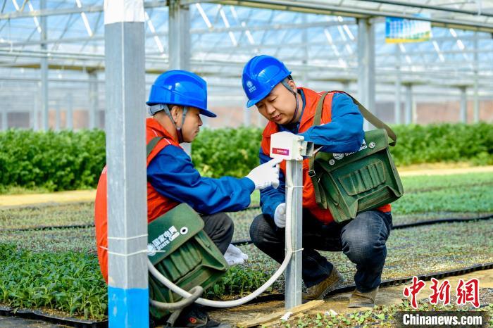 山西忻州,供電人員走進(jìn)當(dāng)?shù)剞r(nóng)業(yè)大棚,檢查用電設(shè)備。國網(wǎng)忻州供電公司供圖