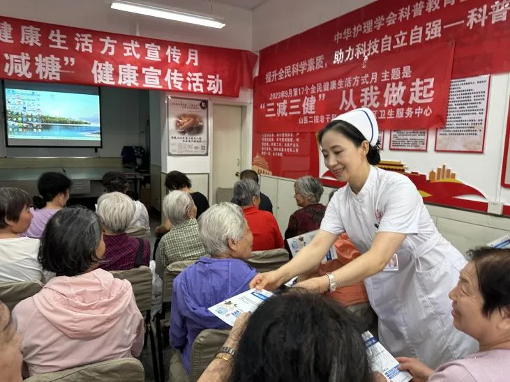 除了慢病管理工作室,山醫(yī)大二院社區(qū)還聯(lián)合轄區(qū)山醫(yī)大二院老干部科、杏花嶺社區(qū)衛(wèi)生服務(wù)中心,開設(shè)健康知識(shí)講座,邀請(qǐng)山醫(yī)大二院專家為老年群體講授“減鹽、減油、減糖”、壓瘡專業(yè)護(hù)理、高血壓保健等方面的健康知識(shí)。