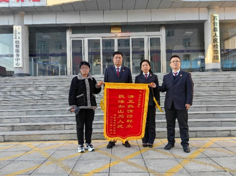 3月18日,五臺縣檢察院門口洋溢著融融暖意。當事人崔女士心情激動,將一面繡有“清正熱情待群眾執(zhí)法如山為人民”的錦旗鄭重地送到檢察官手中,表達對檢察官依法履行民事支持起訴職能,為其排憂解難的誠摯感激。