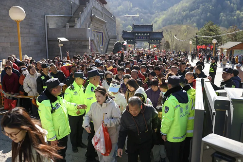 五臺(tái)山景區(qū)既有秀美的自然風(fēng)光,又有悠久的佛教文化,景區(qū)的吸引力給安保工作帶來(lái)很大壓力。忻州市公安局、五臺(tái)山公安分局兩級(jí)公安機(jī)關(guān)密切聯(lián)動(dòng)、精準(zhǔn)分析,在景區(qū)交通要道和核心景區(qū)設(shè)立警務(wù)執(zhí)勤點(diǎn),民警輔警猶如景區(qū)的 “守門(mén)人”,不僅能在游客高峰時(shí)高效疏導(dǎo)人流,解答游客關(guān)于景區(qū)游覽路線、注意事項(xiàng)等疑問(wèn),還能第一時(shí)間處理各類(lèi)糾紛與突發(fā)事件,為游客保駕護(hù)航。