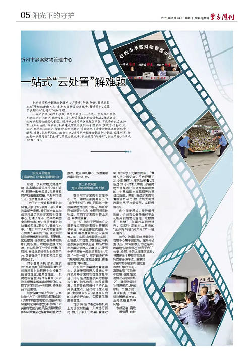 “為了進(jìn)一步破解涉案財物保管分散、執(zhí)行依據(jù)不明、處置效率低等難題,我們在全省率先創(chuàng)新打造了案件涉案財物管理中心,打通了跨部門協(xié)同辦案的全流程節(jié)點,全力提升涉案財物處置規(guī)范化、高效化、智能化水平?!睋?jù)忻州市涉案財物管理中心負(fù)責(zé)人李鴻劍介紹,通過細(xì)化財物保管和移送規(guī)則,明確市、區(qū)檢察院、法院和公安局等相關(guān)部門的職能、財物移送操作規(guī)范,成功構(gòu)建了一個底數(shù)清、保管善、專業(yè)化的涉案財物保管平臺,顯著降低了財物貶損風(fēng)險和保管成本。